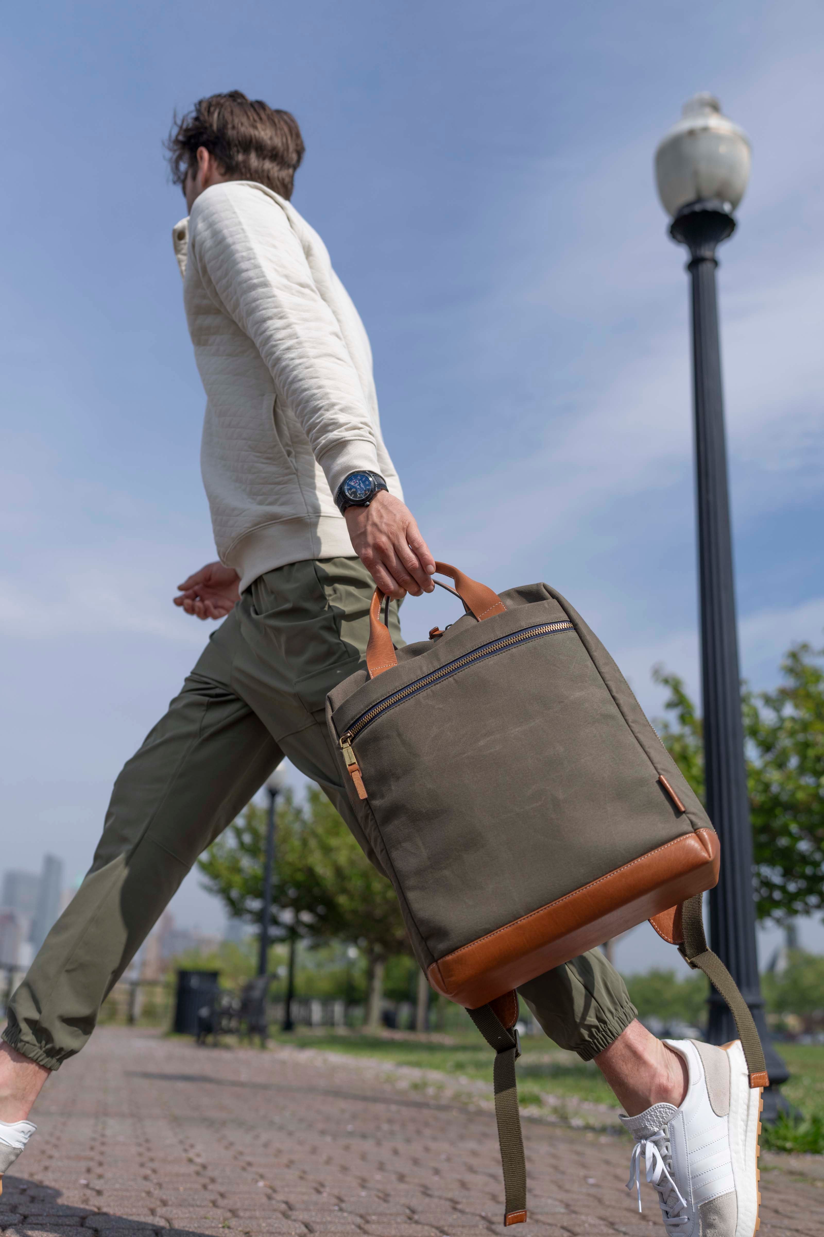 The Voyager 18” 20 oz. Waxed Canvas Travel Backpack - Olive